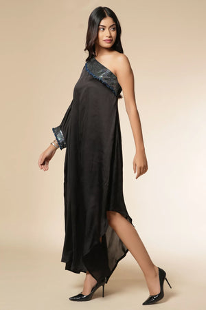 BLACK ASYMMERTICAL DERESS